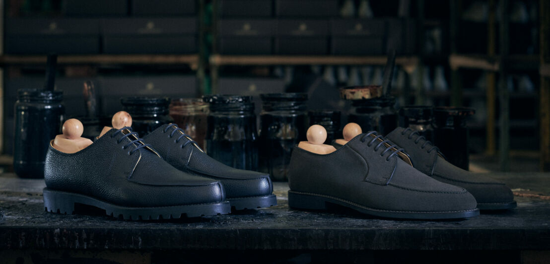 Bis zu 250 Schritte erfordert die manuelle Fertigung der hochwertigen Herrenschuhe. Einer der Gründe: Die speziellen Materialkombinationen erfordern Schnitt- und Nahtführungen, die eine standardisierte Produktion unmöglich machen. Creative Director Floris van Bommel leitet die Manufaktur in neunter Generation gemeinsam mit seinen beiden Brüdern.