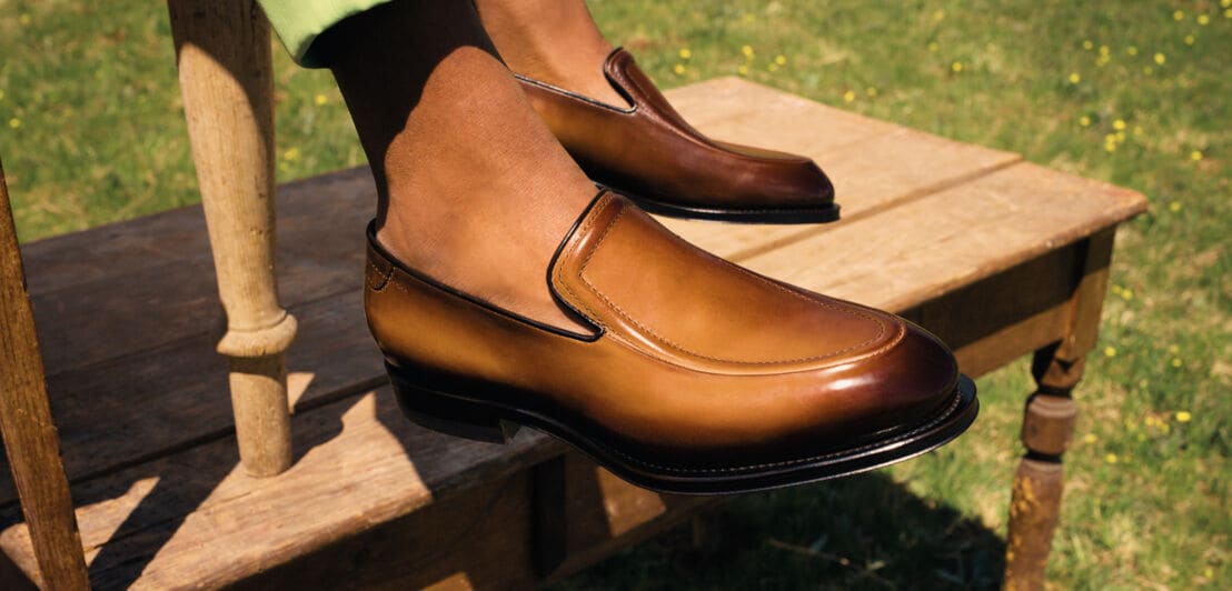Das 1975 gegründete Familienunternehmen steht für Schuhmacherkunst in Vollendung, nicht nur aufgrund seines mehrfach von Hand gegerbten Leders. Der 2021 verstorbene Gründer Andrea Santoni betrachtete es als Mission, Traditionen alter italienischer Schuhmacher:innen lebendig zu halten, und baute seine Marke zu einem Global Player im Segment der luxuriösen Herrenschuhe aus. Seit 2013 führt Giuseppe Santoni die Firma weiter auf Wachstumskurs – und setzt dabei auch auf Kooperationen mit Unternehmen wie Mercedes oder IWC Schaffhausen.