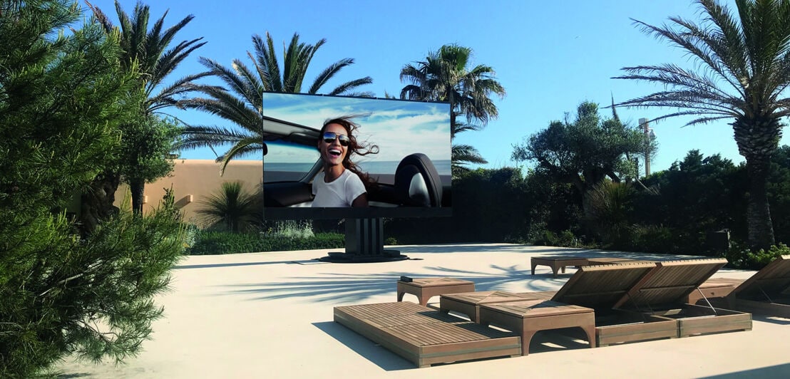 Speziell für den Außeneinsatz ist der MicroLED-Fernseher C SEED 201 konzipiert. Das Gerät des Herstellers aus Beverly Hills ist in einem Bodentank verbaut, fährt als Säule nach oben und entfaltet dann sein über fünf Meter in der Diagonale messendes Display. Damit der Screen auch in der Sonne Kaliforniens voll zur Geltung kommt, hat der 4K-Fernseher eine extrem hohe Helligkeit von 4.000 Nits. Derzeit ist das Gerät für rund 570.000 Euro lieferbar.