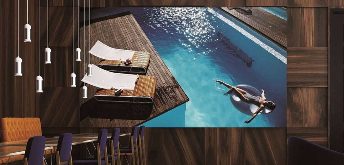 Ein Name wie ein Statement: The Wall – die Wand ist Samsungs fast beliebig skalierbare Fernsehwand aus einzelnen Kacheln, die bei Kund:innen zu einem Gesamtdisplay verbunden werden. Bis zu 1.000 Zoll (rund 25 Meter) in der Diagonale misst der Riesenfernseher in seiner maximalen Ausbaustufe.