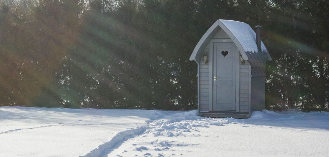 Kleine Sauna in einem verschneiten Garten