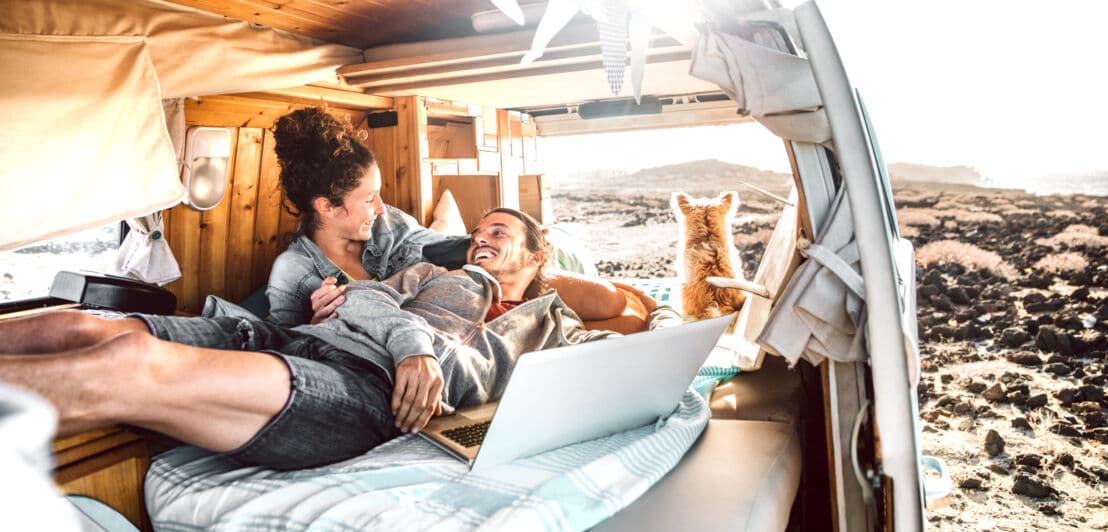 Ein Bulli oder Van ist flexibler als ein großes Wohnmobil und verbraucht nicht so viel Sprit. Die Parkplatzsuche und die Unterkunft auf Campingplätzen sind einfacher – die Ausstattung des Fahrzeugs ist es allerdings auch.