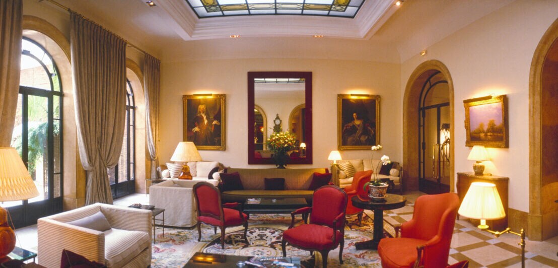 Als du am nächsten Morgen aufwachst, lugt die Sonne bereits hinter den schweren Vorhängen hervor. Hohe, stuckverzierte Decke, ein Kronleuchter, antikes Mobiliar und feines Fischgrätenparkett: Euer Zimmer ist noch großzügiger als ursprünglich vorgesehen – denn dank deiner Platinum Card habt ihr beim Einchecken ein Zimmer-Upgrade erhalten.