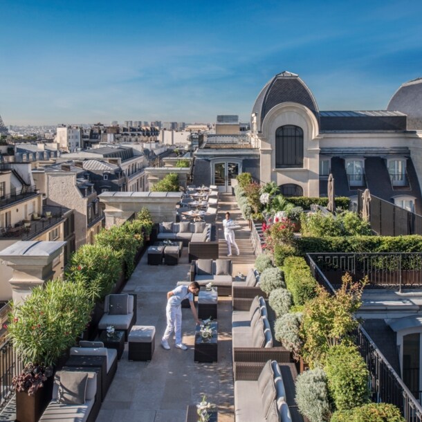 Nice to know: Das Hotelguthaben kannst du ebenso für eine wohltuende Massage oder eine andere Anwendung im Spa- und Fitnessbereich nutzen, der sich im 8. Stock des Hotel Lancaster befindet und dessen Dachterrasse eine prächtige Aussicht auf Paris bietet.
