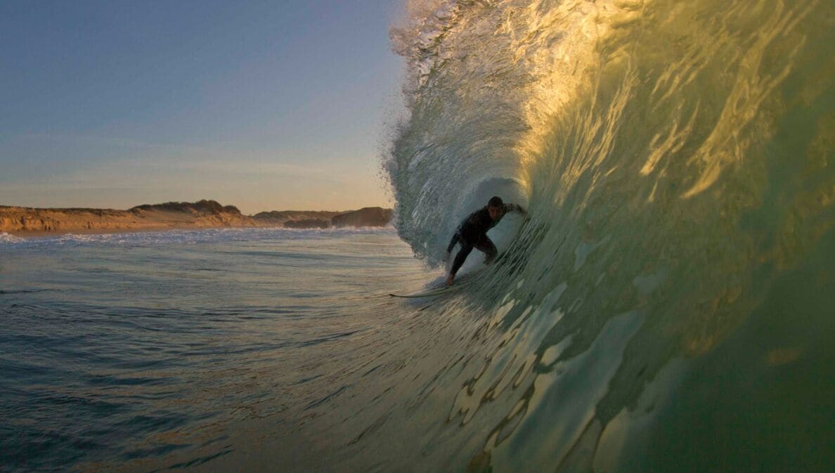 Durch den langen Fetch über den Atlantik rollt ein perfekter Groundswell an. Ein Traum für Wellenreiter:innen aller Levels, zumal es vielerorts Surfcamps gibt, die ganzjährig Kurse anbieten. Wer das Brett noch nicht so gut beherrscht, sollte lieber im Sommer in Portugal surfen – im Winterhalbjahr kommen vor allem die Cracks auf ihre Kosten.