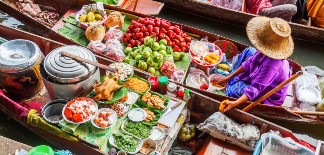 - Damnoen Saduak und Floating Market in Amphawa, die schwimmenden Märkte