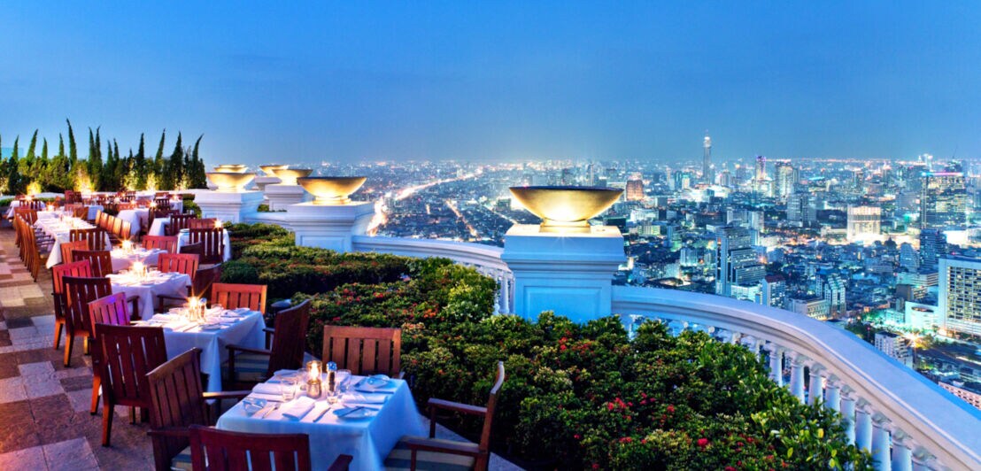 - Die Dachterrasse Mahanakhon SkyWalk eignet sich super, um einen Sundowner zu trinken. Exklusiv ist der Glasboden in 310 Meter Höhe.