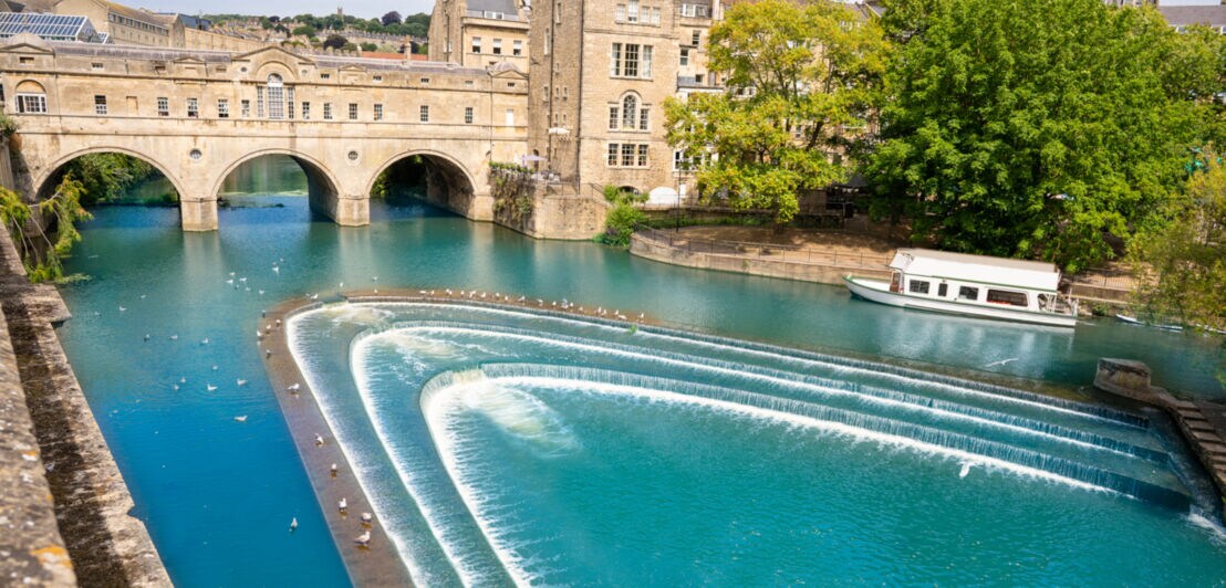 Eines der berühmtesten Beispiele georgianischer Architektur im Stil des italienischen Architekten Palladio ist die eindrucksvolle Pulteney Bridge mit ihren ikonischen drei Torbögen.