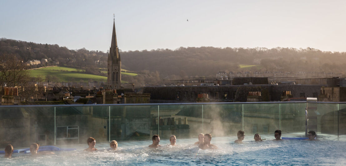 Bath ist für sein mineralhaltiges heißes Wasser aus natürlichen Quellen berühmt – eine Erfahrung, die du dir bei einem Besuch nicht entgehen lassen solltest. Die Römischen Bäder sind zwar Badegäst:innen nicht zugänglich, doch es gibt eine ganze Reihe weiterer Pools und Spas, in denen das Baden möglich ist.