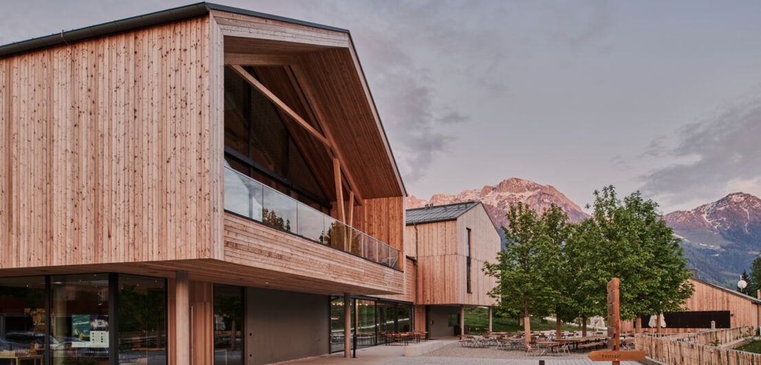 Der Holzbau des Hofs fügt sich in die Landschaft ein und wurde nach ökologischen Gesichtspunkten aus Mondholz und regionalem Lehm aus der Region gebaut. Aus den Panoramafenstern der insgesamt 34 Zimmer, davon zwei Stadln in kleinen Hütten und zwei Suiten, schaust du auf den Watzmann und den Hochkalter. Die Räume sind liebevoll-rustikal eingerichtet. Einen Fernseher gibt es nicht, der wird dir aber auch nicht fehlen.