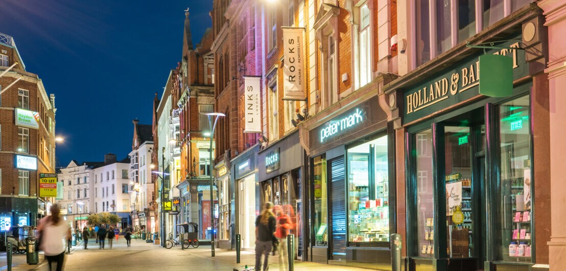 - In der Grafton Street, Dublins zentraler Einkaufsstraße, shoppst du nicht nur ausgiebig, sondern lauschst auch der Musik der vielen Straßenmusiker:innen.