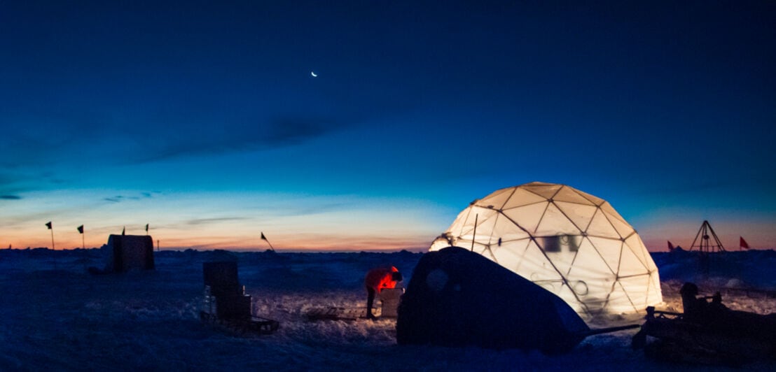 Forscher vor Iglu-Zelt im Eis