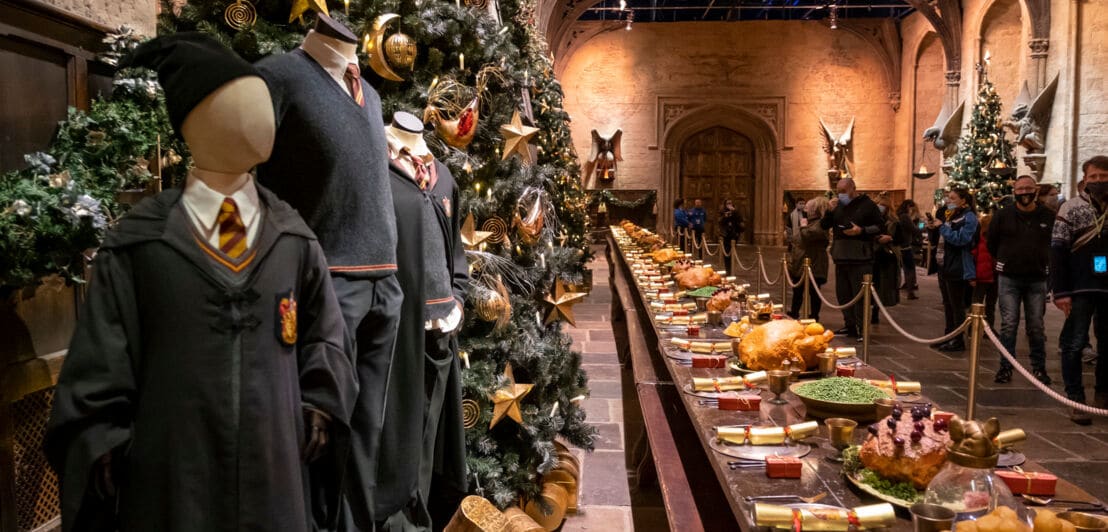 In den Studios kannst du vier große Sets besichtigen: die große Halle von Hogwarts, den Verbotenen Wald, Gleis 9 ¾ und die Winkelgasse. Dazu kommen Requisiten wie das Klassenzimmer für Zaubertrank-Unterricht oder der Schrank der Erinnerungen mit seinen vielen Fläschchen.