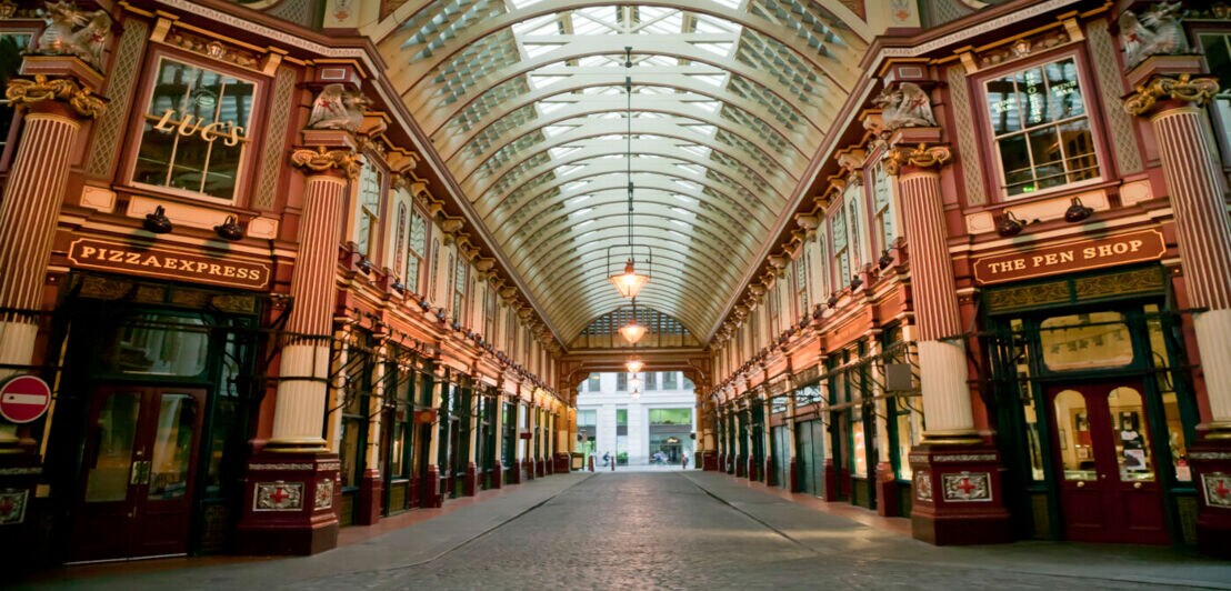 Du suchst die berühmte Winkelgasse? Dann mach dich auf zur Einkaufspassage Leadenhall Market, nicht weit entfernt vom Tower. Dort werden schon seit dem 14. Jahrhundert Waren aller Art verkauft, 1881 bekam der Markt dann die Überdachung, für die er heute berühmt ist. Am besten erreichst du Leadenhall Market mit den U-Bahn-Linien „Circle“ oder „District Line“, Haltestelle „Monument“. Nach fünf Minuten zu Fuß bist du am Ziel.