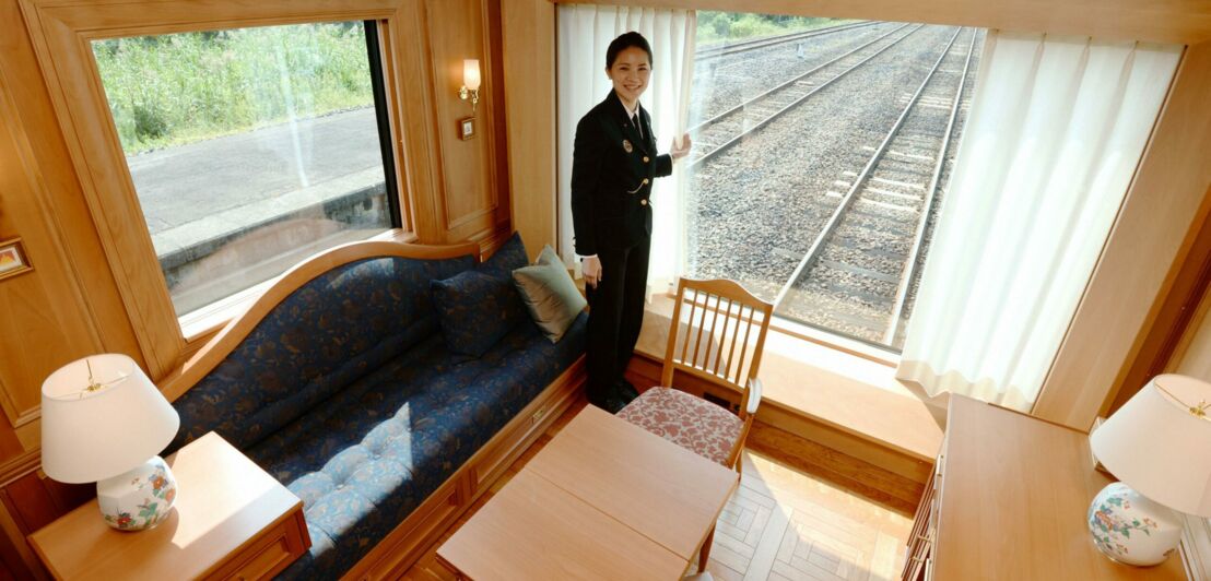 Das Design soll sowohl Japaner:innen als auch Europäer:innen ansprechen, die sich die zwei- bis viertägige Rundtour leisten können. Denn – wen wundert’s – ganz günstig ist der Bahnausflug nicht. Rund 2.000 Euro pro Person müssen Interessierte für einen zweitägigen Trip in der kleinsten Suite mindestens berappen, in der Deluxe-Variante mehr als das Dreifache.