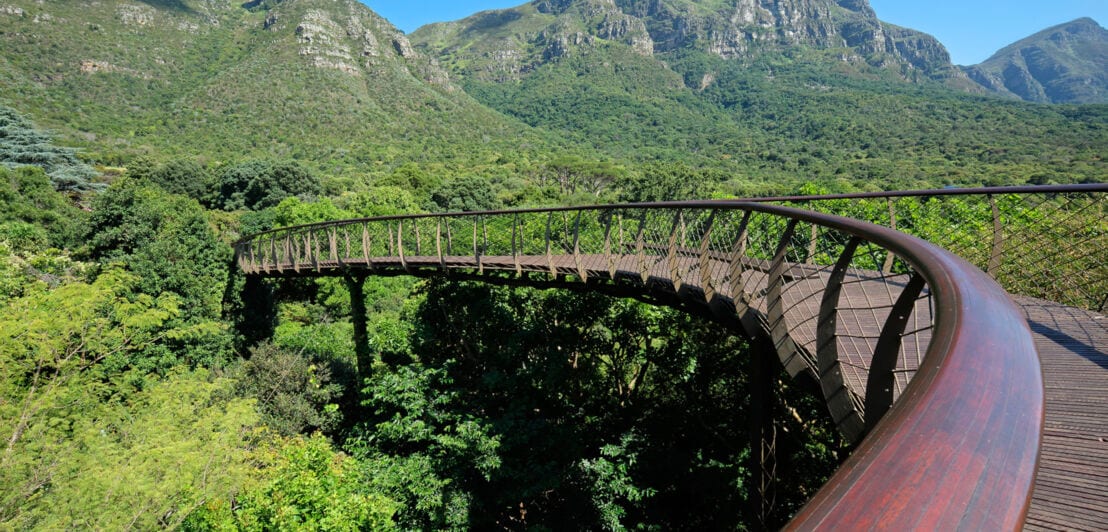 Sportliche verbinden einen Ausflug in den schönsten Garten mit einer Wanderung auf den Tafelberg: Von Kirstenbosch führen die berühmten Wanderwege Skeleton Gorge und Nursery Ravine direkt auf das Hochplateau. Die Route ist allerdings eher für geübte Wander:innen geeignet.