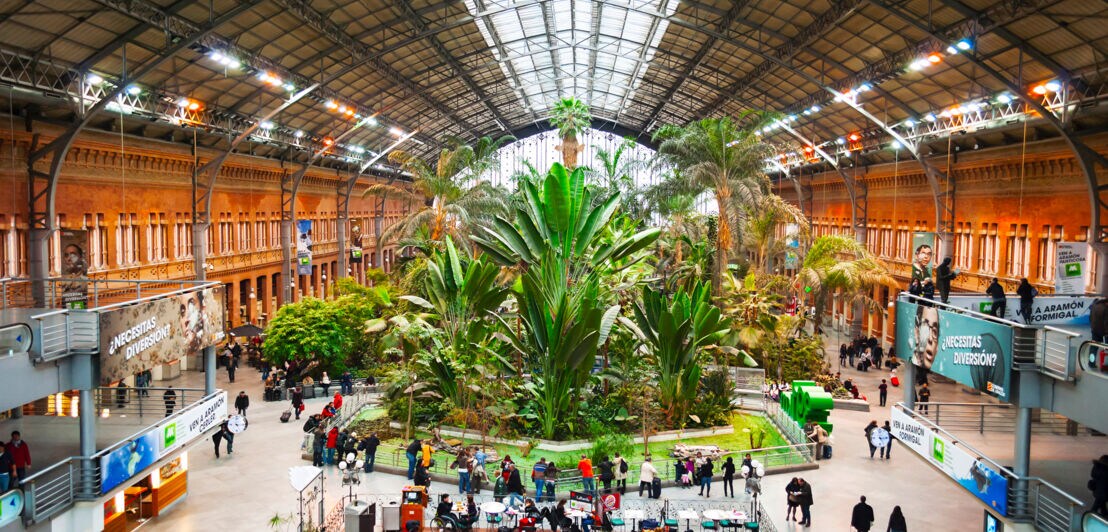 Must-see: Ein besonderes grünes Highlight ist auch die alte Halle des Bahnhofs Atocha, in der ein tropischer Palmengarten angelegt wurde.