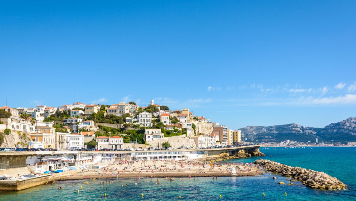 Nice to know: Der größte Strandabschnitt Marseilles wurde in den 1970er-Jahren künstlich angelegt, um den Bewohner:innen einen besseren Zugang zum Meer zu gewähren.