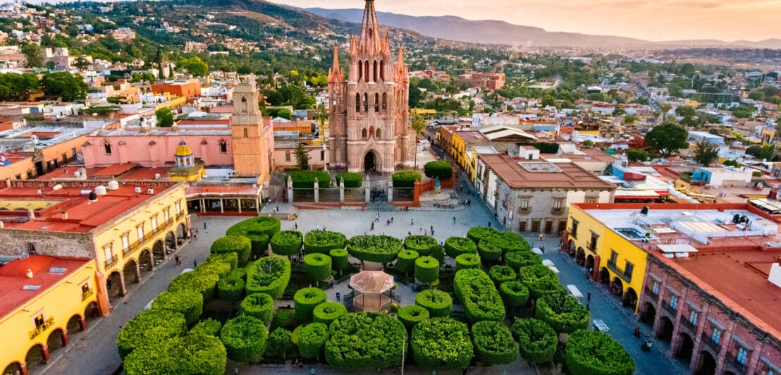 - San Miguel de Allende: Die 1542 gegründete Ansiedlung im Hochland gilt als Stadt der Kunst und Kultur und gehört seit 2008 zum UNESCO-Weltkulturerbe. Sie bezaubert mit engen Gassen, imposanter Architektur und dem Charme des alten kolonialen Mexikos. Tolle Restaurants, Galerien, Bars und Pop-up-Stores laden zum Verweilen ein.