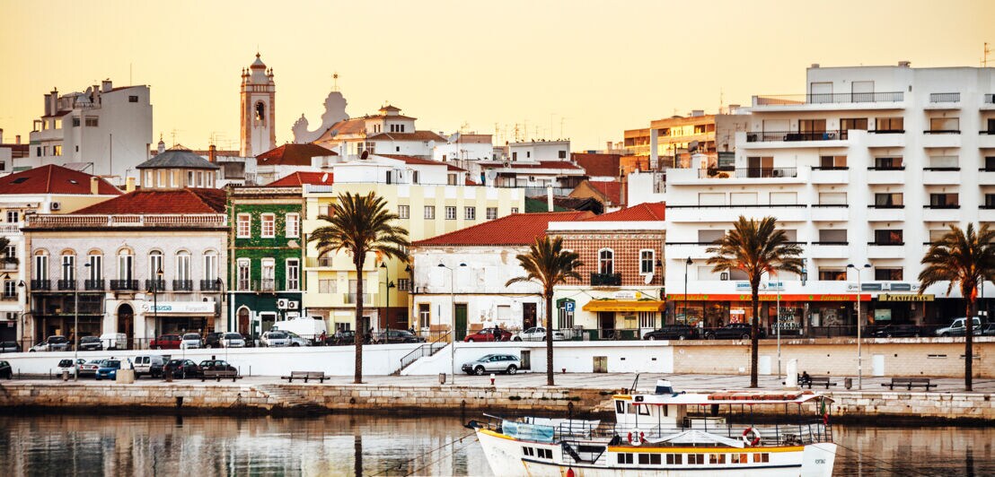 Die Hafenpromenade von Portimão bei Sonnenuntergang