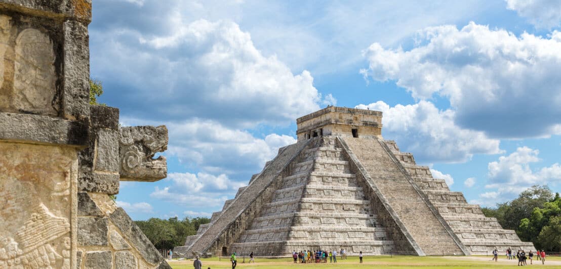 Ebenfalls im Osten Mexikos auf der Yucatán-Halbinsel liegt das UNESCO-Weltkulturerbe Chichén Itzá, eine der bedeutendsten archäologischen Stätten der Maya. Die Hauptattraktion auf dem Gelände ist die Pyramide Kukulkán mit ihrer markanten Stufenform. Als eine der wohl berühmtesten Pyramiden Mexikos ist sie ein beliebtes Ausflugsziel und zieht jährlich Tausende Besucher:innen an.