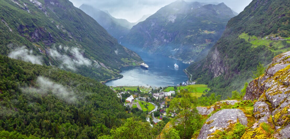Absoluter Höhepunkt ist der Geirangerfjord, der zum Welterbe der UNESCO zählt, und der nach ihm benannte Ort, der wie ein Postkartenmotiv an seinem Ende liegt – umsäumt von alten Bergbauernhöfen und spektakulären Wasserfällen. Vom Aussichtspunkt Flydalsjuvet schweift der Blick über den Fjord und die sich Hänge zu seinen Seiten. Nicht umsonst gilt er als der schönste Fjord der Welt. Nach gut 900 Kilometern endet dieser Reiseabschnitt in Trondheim, Norwegens drittgrößter Stadt.