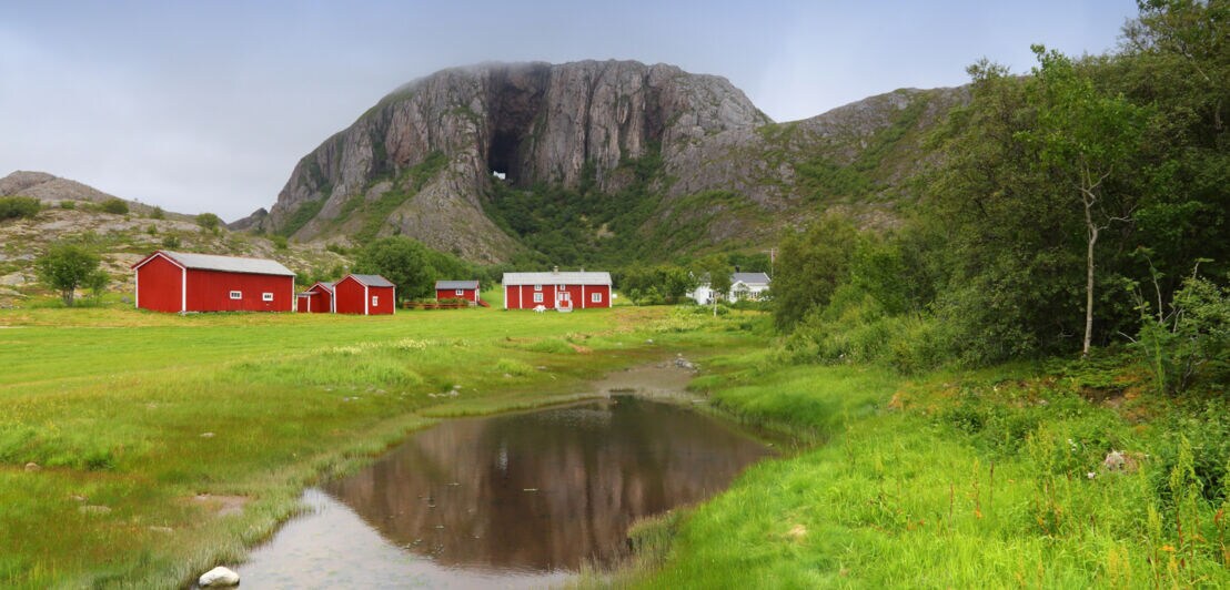 Auf dem Weg nach Norden passierst du den Polarkreis und erlebst vielfältige Natur, zum Beispiel das offene Meer und den Torghatten, einen Berg im Trollfjell-Geopark, den ein etwa 25 Meter hohes und 160 Meter langes Loch wie eine Schusswunde durchbohrt. Ganz im Norden ist die Natur geprägt von imposanten Bergen, aber auch von einer faszinierenden Insel- und Kulturlandschaft. Die Roadtrip-Route führt zudem am Svartisen vorbei, Norwegens zweitgrößtem Gletscher. Im Sommer ist es hier besonders schön, da die Sonne fast gar nicht untergeht.