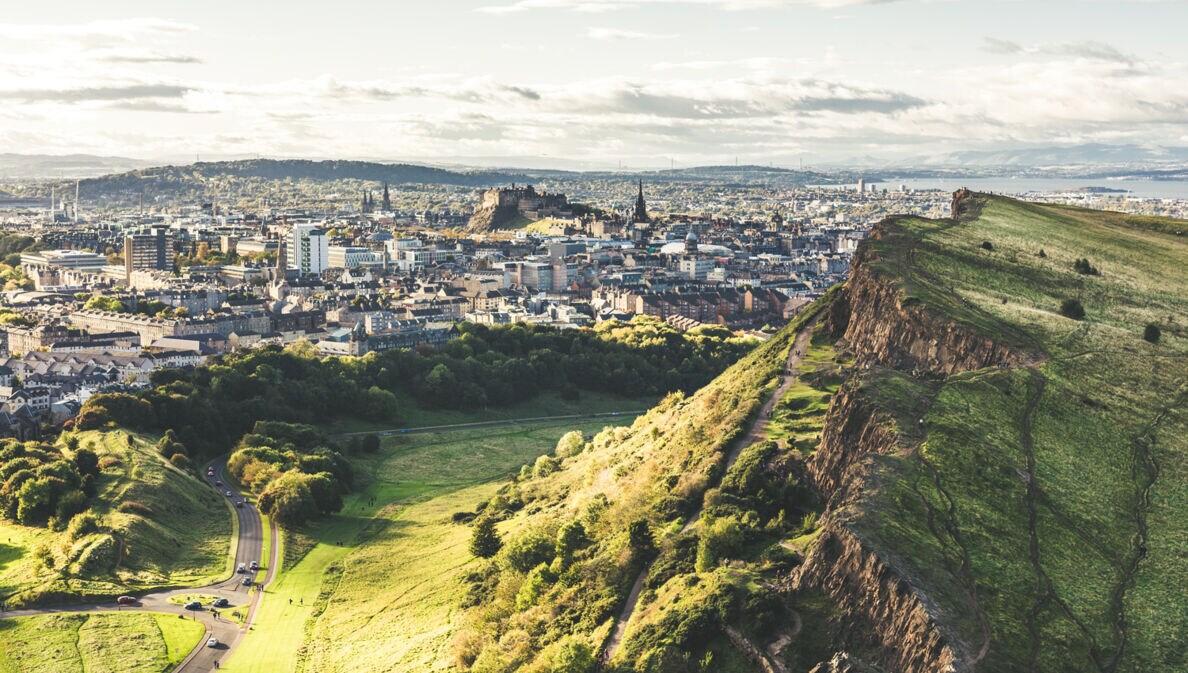 Must-do: Edinburghs Hausberg Arthur’s Seat erklimmen und von dort aus das Panorama genießen, über die gesamte Stadt bis hin zur Brücke über den Meeresarm Firth of Forth und den südlichen Highlands.