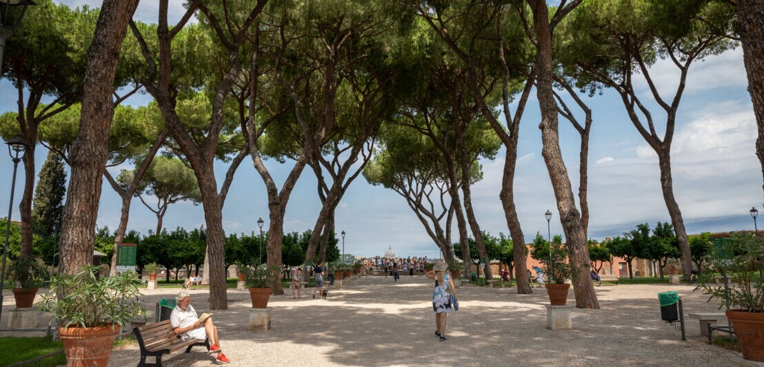 Auf dem Aventin, einem der sieben Hügel, auf denen das antike Rom erbaut wurde, findest du abseits des städtischen Trubels eine Oase der Ruhe. Der Orangengarten („Giardino degli Aranci“) bietet neben wunderschönen Orangenbäumen, die vor allem im Frühling und Sommer blühen, auch schattige Plätze unter Pinien und Palmen und vor allem ein atemberaubendes Panorama.