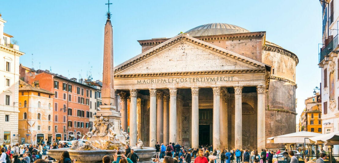 Das Pantheon im historischen Zentrum Roms ist eines der beeindruckendsten Bauwerke der Stadt. Trittst du durch den Eingang in die runde Halle des überkuppelten Hauptbaus, schweift dein Blick automatisch nach oben: An der Decke des Kuppelbaus siehst du eine Öffnung von fast neun Metern Durchmesser, das berühmte Oculus (Auge).