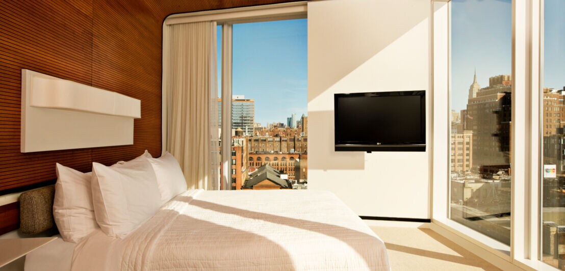 Es ist kaum möglich, diese Stadt zu beschreiben, ohne dabei in Superlative zu verfallen: New York ist eine der großartigsten Metropolen der Welt. Vor allem der mehr als 21 Kilometer lange Insel-Stadtteil Manhattan bietet derart viele Highlights an Kultur, Shopping, Architektur, Food und Nightlife, dass es Monate dauern würde, alles auszuprobieren. Auch die Auswahl an Hotels in der Stadt, die niemals schläft, erscheint schier unendlich. Wir haben für dich eine Auswahl an berühmten, exklusiven und ungewöhnlichen Quartieren zusammengestellt.