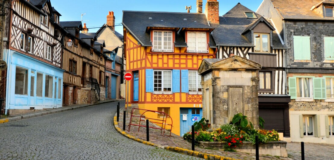 Wo die Seine in den Ärmelkanal mündet, liegt eine Perle der Normandie: die kleine Stadt Honfleur mit rund 7.000 Einwohner:innen. Die leicht verwitterten Häuschen, das Kopfsteinpflaster in den Gassen und der Hafen verbreiten eine authentische Atmosphäre, die dich in eine längst vergangene Zeit versetzt. Aus der großen Politik hielt sich Honfleur meist heraus – vielleicht zog das entspannte Städtchen gerade deshalb Künstler:innen wie Claude Monet, Pierre-Auguste Renoir und Paul Cézanne an.