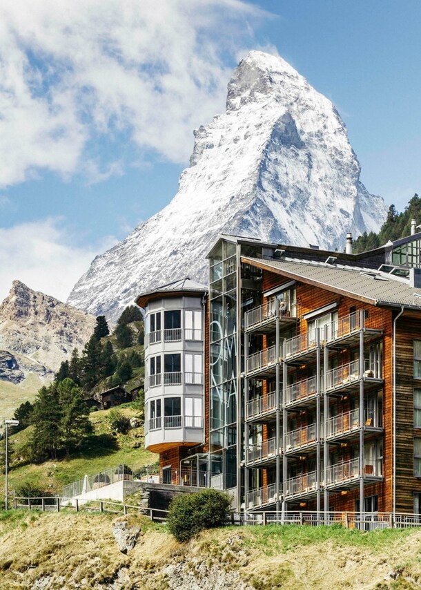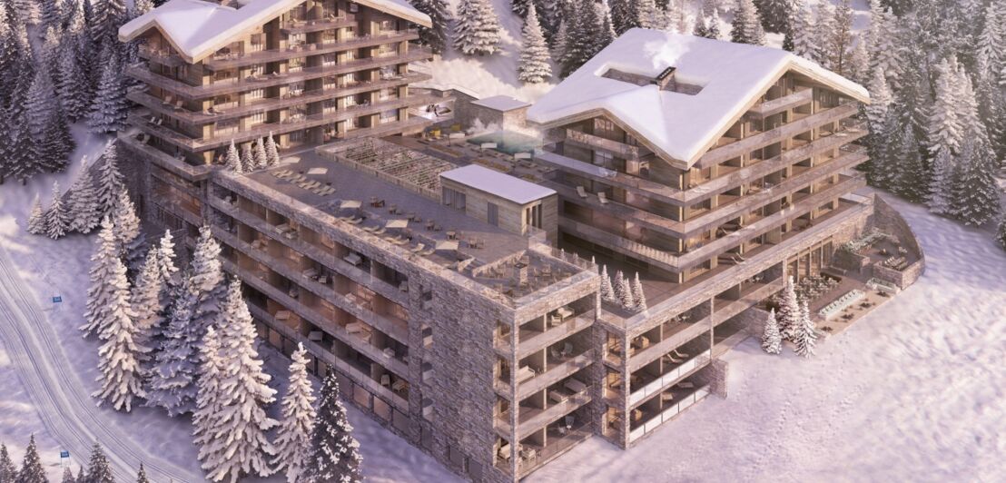 Ski-in, Ski-out lautet das Motto des neuen Six Senses Luxushotels im Schweizer Skigebiet Crans-Montana. Ab Februar 2023 können Gäst:innen hier vom Bett direkt aufs Brett steigen. Möglich macht das die Top-Lage über der Hauptgondel in Crans, von der Wintersportler:innen zu insgesamt 160 Pistenkilometern hinauffahren können.