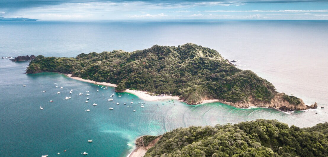 Vor der Halbinsel Nicoya liegt im gleichnamigen Golf die kleine, unbewohnte Isla Tortuga. Der Tagesausflug mit dem Boot zur tropischen Schildkröteninsel lohnt sich auch für einen Strandbesuch. Du kannst es dir zum Beispiel beim Sonnenbaden gemütlich machen oder eine Runde Beachvolleyball spielen.