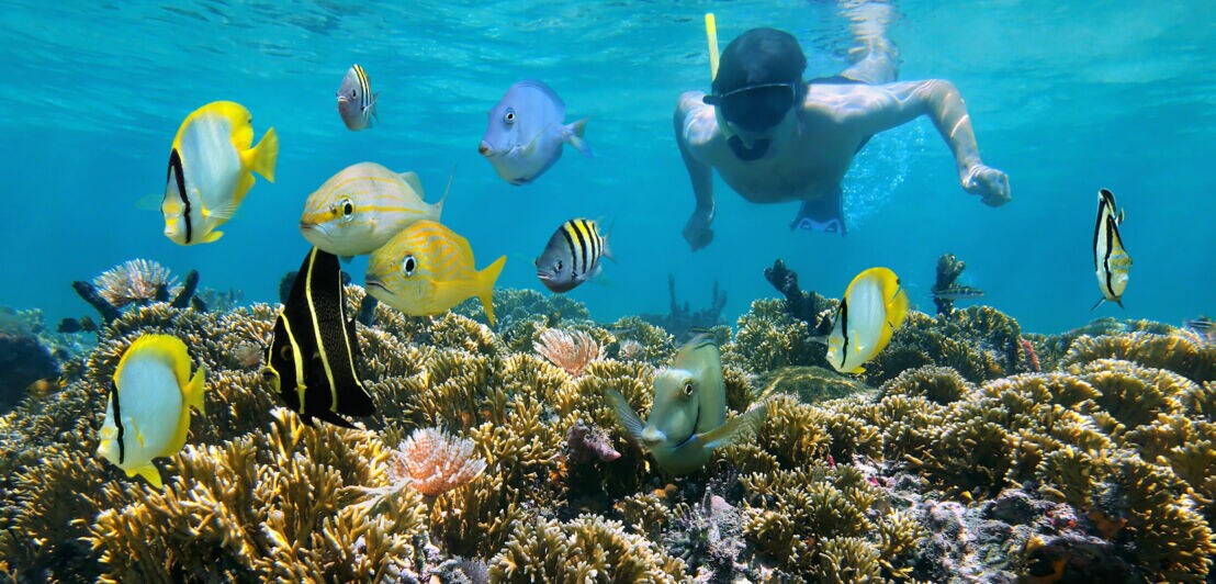 An der Pazifikküste Costa Ricas findet sich ein weiteres Paradies für Schnorchler:innen: der unberührte Küstenabschnitt und das Korallenriff der Playa Conchal mit seiner bunten Unterwasserwelt. Der Strand Conchal gehört zu Costa Ricas schönsten Stränden, denn dort ist auch der Sand etwas ganz Besonderes. Die feinen Sandkörner sind eigentlich Millionen von klitzekleinen Muschelsplittern.