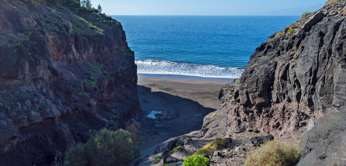 Die Playa de las Nieves liegt am Hafen Puerto de las Nieves im Norden von Gran Canaria. Im Gegensatz zu vielen anderen Stränden ist die Playa de las Nieves kein Sandstrand, sondern besteht aus Kieselsteinen. Die Folge: Hier ist das Wasser besonders blau. Und dahinter thront die felsige Küstenlandschaft der Provinz Barranco de Guayedra.