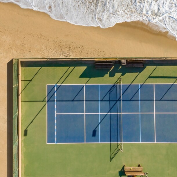 Der besondere Clou: Bis auf wenige Ausnahmen an Feiertagen können Urlauber:innen ab einem Aufenthalt von fünf Nächten kostenlos so oft spielen, wie sie möchten. Zudem organisiert das Hotel regelmäßig Doppelturniere für alle Tennisbegeisterten, die sich mit anderen messen möchten. Angegliedert ist eine professionelle Tennisschule, die verschiedene Trainingsprogramme für Erwachsene, Kinder oder gleich die ganze Familie anbietet.