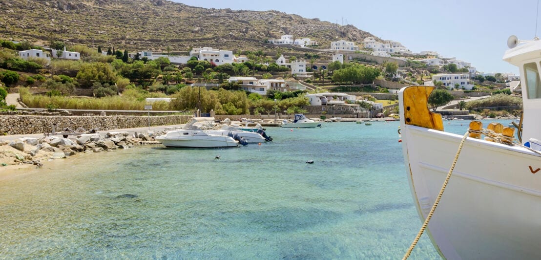 Glasklares blaues Meer, weißer Sand: Die 90 Kilometer Küstenlinie von Mykonos bieten zahlreiche Plätze, an denen Urlaubende die Mittelmeersonne ruhig und entspannt genießen können. Doch die Strände der Insel sind vor allem für ihre heißen Partys, ihre ausgelassene Stimmung und betuchten Besucher:innen berühmt. Einige besonders bekannte oder attraktive Strände stellen wir dir hier vor.