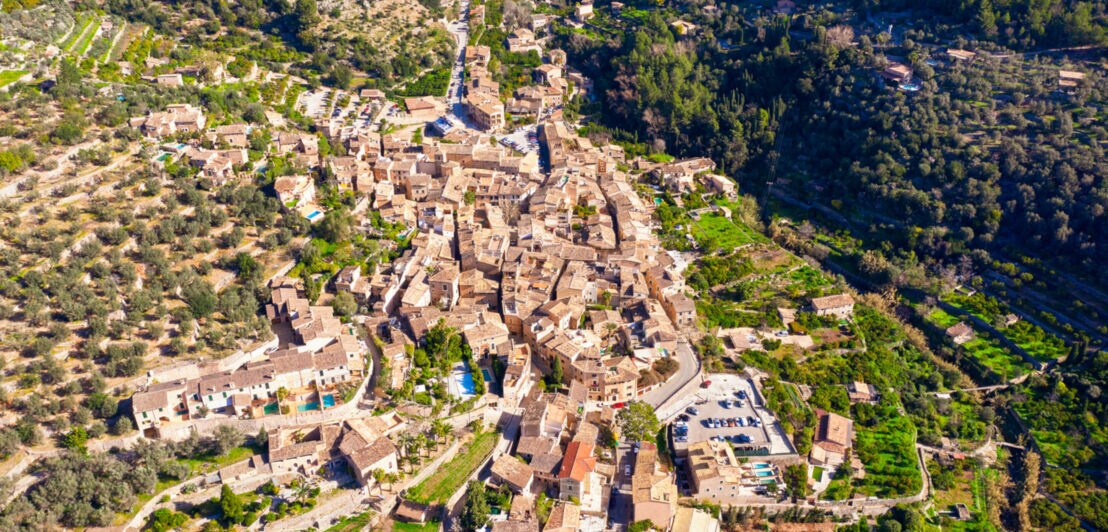 Aufnahme einer Drohne vom Dorf Fornalutx