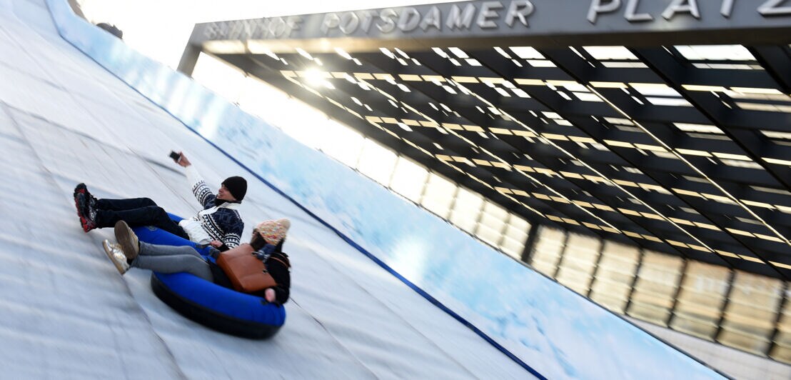 Der Weihnachtsmarkt am Berliner Potsdamer Platz und die dazugehörige Winterwelt ergänzen sich hervorragend. Zuerst Eislaufen auf der Eisbahn im Center, dann Rodeln und die zwölf Meter hohe und 70 Meter lange Winterrutsche hinunterdüsen, danach mit Bratwurst, Crêpes und gebrannten Mandeln stärken.