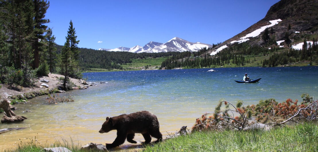 Neben dem Schwarzbären leben gut vierzig gefährdete Tierarten im Yosemite-Nationalpark, wie der Grizzlybär oder der kalifornische Rotfußfrosch. Daneben können unter anderem auch diese Tiere deinen Weg kreuzen: