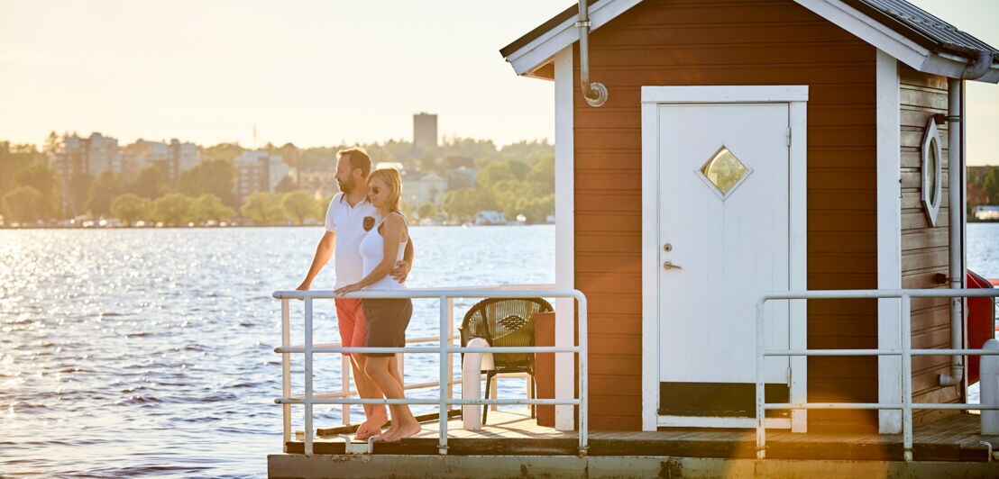 Das schwimmende Gästehaus, ursprünglich ein Kunstprojekt des Architekten Mikael Genberg, liegt vor der idyllischen Stadt Västerås und ist nur per Boot erreichbar. Auf der kleinen Holzterrasse kannst du die Sonne genießen, gemütlich ein Buch lesen, von hier aus schwimmen gehen oder mit einem Ruderboot zu den stillen Inseln des Sees übersetzen.