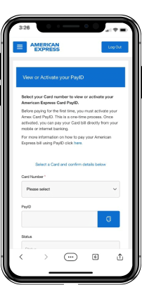 Activate your Amex Card PayID by