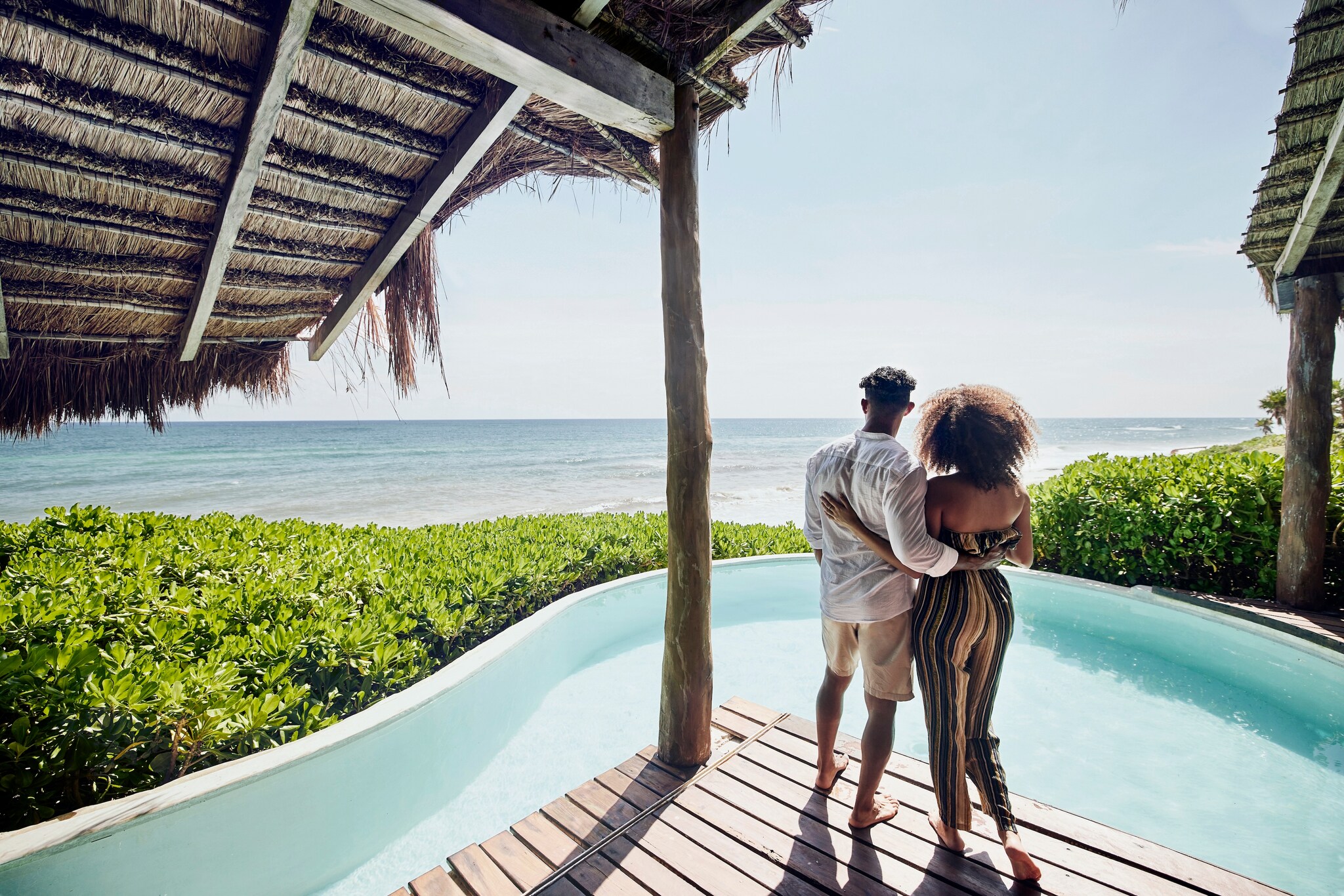 Put the US$100 credit toward: renting a private palapa (a cabana-like open air space with a thatched roof).