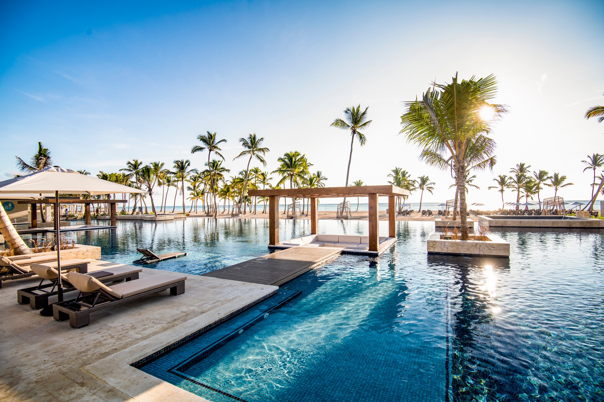 A Cardmember favourite, the Hyatt Zilara Cap Cana is a chic, adults-only all-inclusive resort overlooking the shimmering Caribbean Sea. Take advantage of 12pm check-in, when available, to get extra time sunbathing on the white sand beach or relaxing in the beachfront infinity pool, which boasts a swim-up bar and hot tub. You’ll dine and sip at more than 20 dynamic on-site restaurants and bars and enjoy vibrant entertainment by local performers at the resort’s amphitheatre.