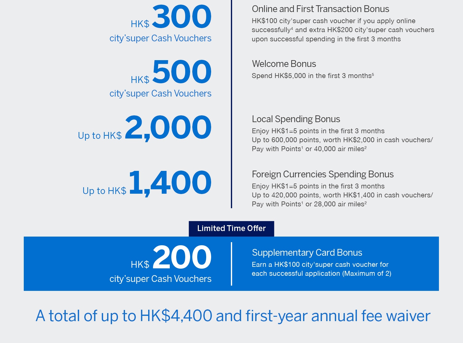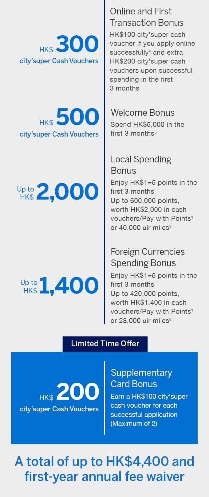 Welcome Offer Worth up to HK$4,4001 plus first-year annual fee waiver |