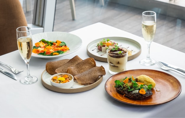 From 15 May to 15 Nov 2023, enjoy a complimentary beverage of choice* with a minimum spend of S$160 during Lunch hours or a minimum spend of S$250 during Dinner hours when payment is made in-store using an eligible American Express® Card.