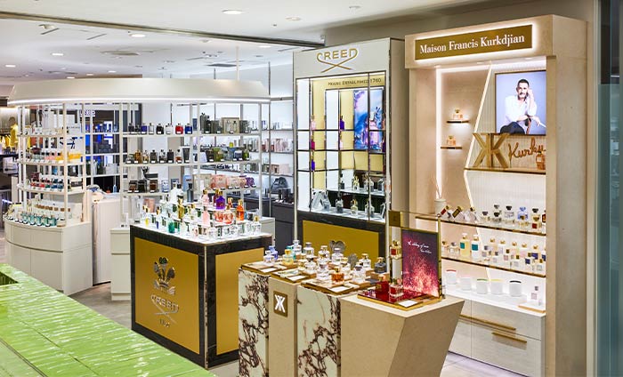 A men’s cosmetics world offering fragrances, skincare, and grooming products. We feature luxury brands and the latest trends to meet the needs of discerning men. An in-house barbershop with certified professionals provides haircuts, grooming, and nailcare for a confident look.