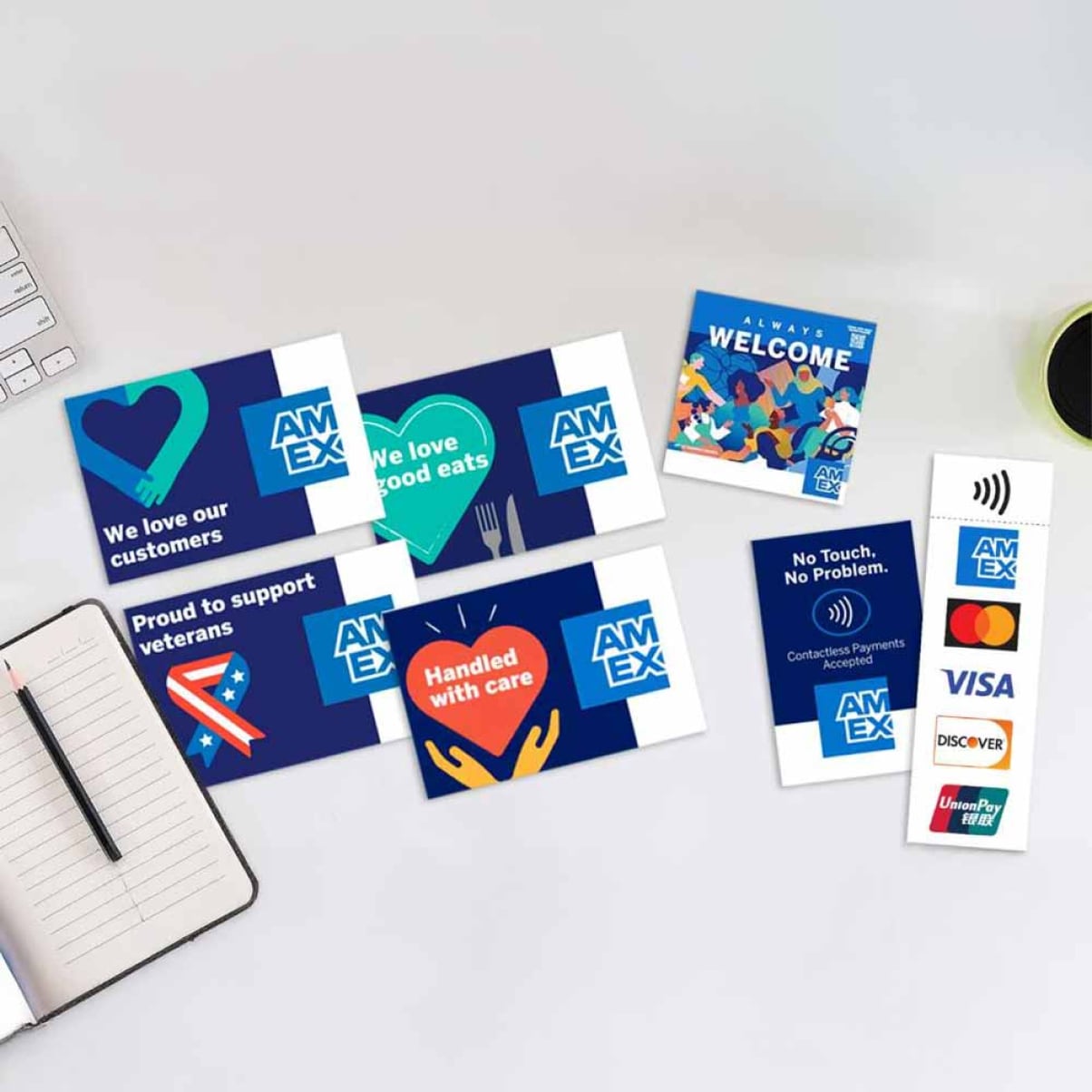 Help your merchants attract and retain customers by displaying American Express decals and other signage.