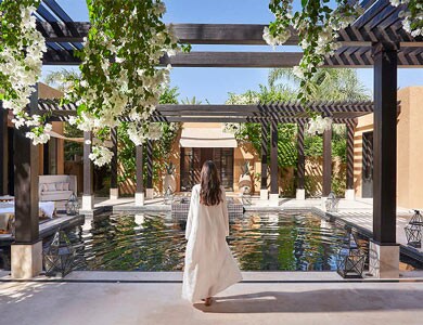 Just 10 minutes from the historic Medina, Mandarin Oriental, Marrakech is spread across 49 acres of rose-scented gardens and centuries-old olive groves. With private pools in every accommodation type — totaling 65 heated pools on property, complemented by the outdoor swimming pool and spa pool, the resort offers a sense of privacy and tranquility amid the excitement of this Moroccan city.